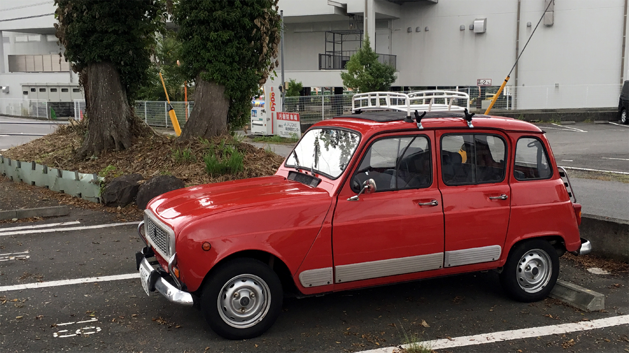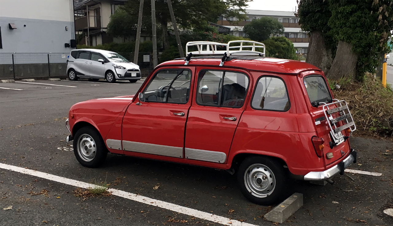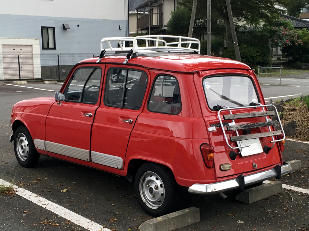 相変わらずつややかな赤をまとうそいつは、今回、リアにラゲッジラックを背負って目に飛び込んできた。ずいぶん前のことだけど一番最初に目にした時は、確かルーフラックもついていなかったと記憶するから、また装いが新たに。