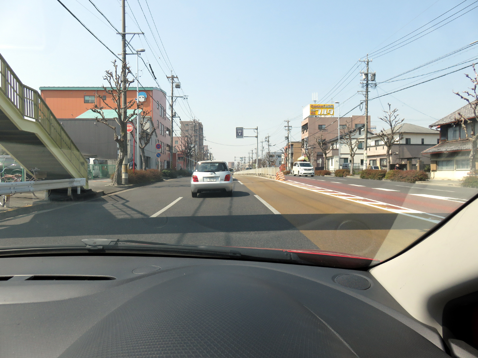 片側3車線の出来町通りを西に進んでいて第3車線の色が違うことには気づいたのだけど・・・