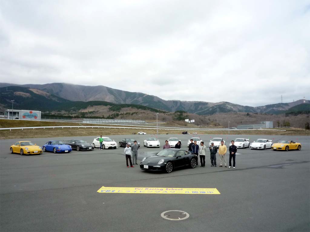ユイレーシングスクールでは独自のドライビングスクールの他に、カークラブや個人からの依頼でオーダーメードのカリキュラムも実施しています。今回の受講者はポルシェクラブ千葉の面々。これで7回目の開催。