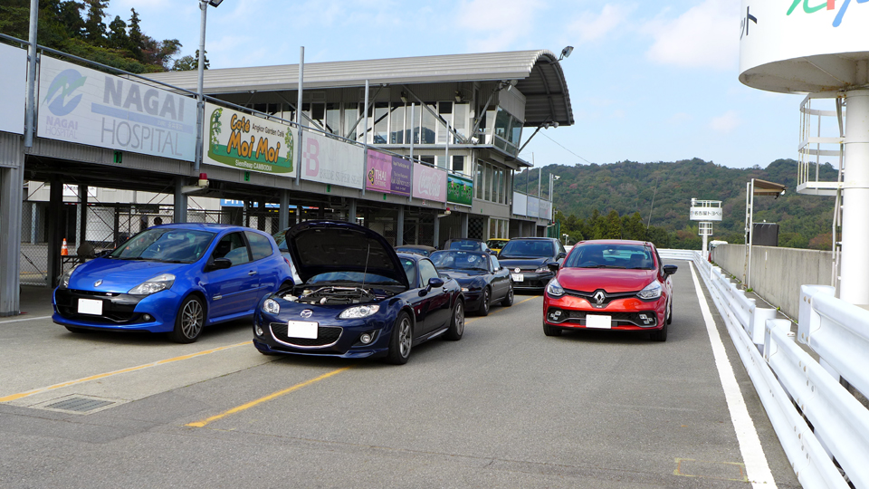 幸田サーキットのピットロードにたたずむFさんのルーテシアⅢRS