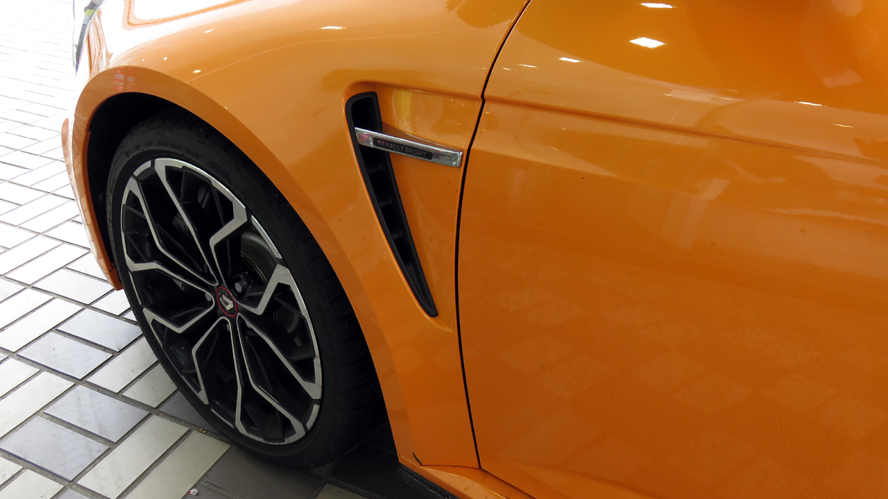 ルーテシアⅣRSシャーシカップは205/40R18のタイヤを7.5Jで18インチのホイールに履く。車重は1280キロ。かたや1480キロで245/35R19の間違いなく重いタイヤとホイールをばね下に抱えながらこの乗り心地。その上のフラット感。