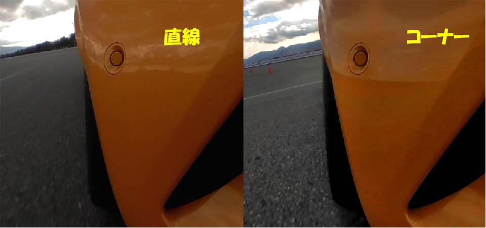 というわけで、コーナリング中のクルマのサスペンションは動きっぱなし。タイヤは上下動するしトー変化もする。だから、タイヤのショルダーとフェンダーの距離が変化するのが4コントロールによるものだと断定はできないけど、まぁ、YRSトライオーバルを走っている時、メガーヌRSの左リアタイヤはこんな動きをしていますよ、ということで。