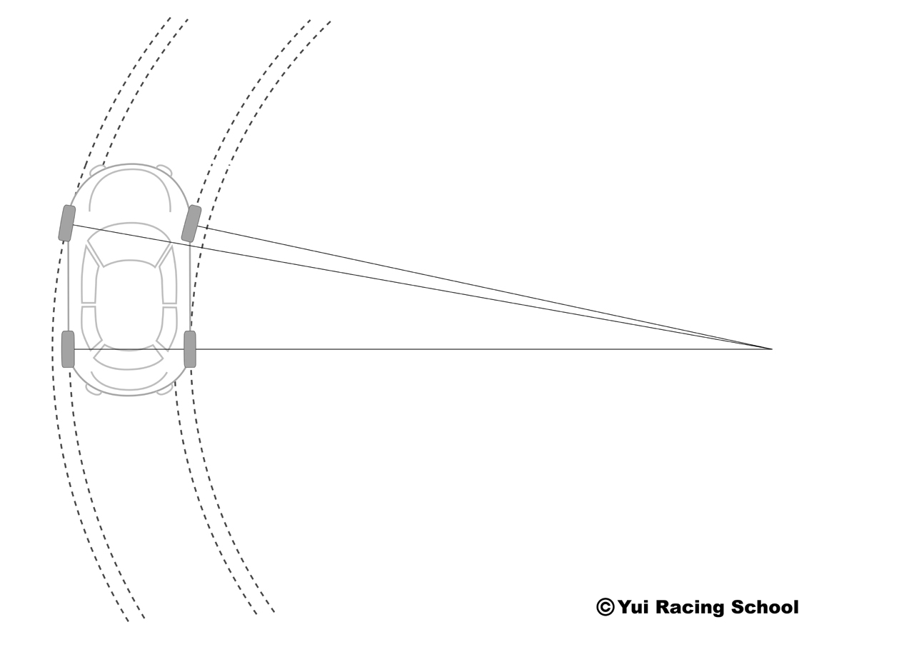 前輪操舵のクルマの旋回中心は後輪の鉛直線上にありますから