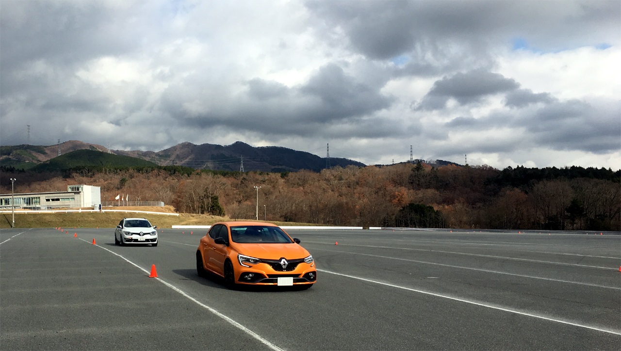 スクールの進行を優先する中で試しただけだからメガーヌRSの実力はこんなものではないけれど、それでも十分に速いし、それでいて安定しているので速く走っている感じが薄く、エキゾーストノートも快感だった。メガーヌRSのスロットルペダルを床まで踏み込むのも気持ちがいい。