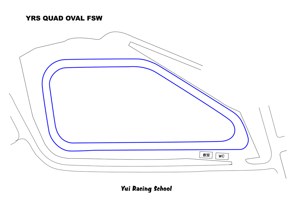 安くはない受講料を払って参加してくれる人に、せっかくなのだから難題を、とデザインしたのがYRSクワッドオーバルFSW。富士スピードウエイの広大な駐車場にパイロンで作った1周約650m、幅14mで、4つの異なるコーナーがあるコース。